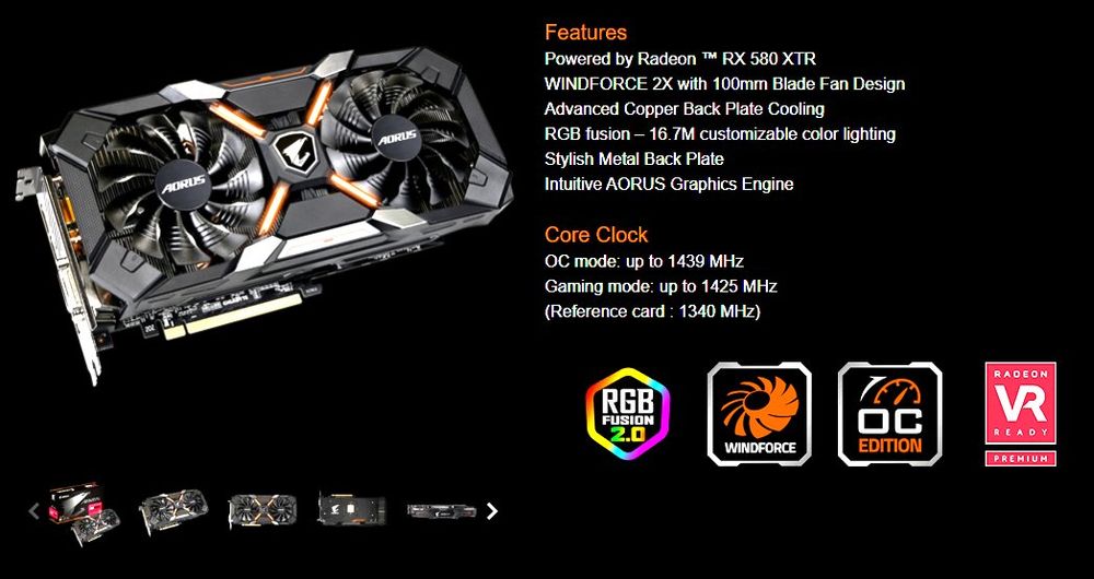 AORUS Radeon RX 580 XTR 8GB Very well made.