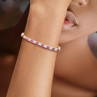 FINE JEWELRY Lab Created Red Ruby 14K Gold Over Silver 7 Inch Very well made.