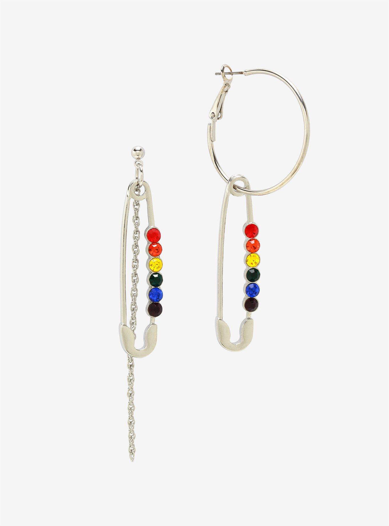 Rainbow CZ Safety Pin Mismatch Earrings Very well made.