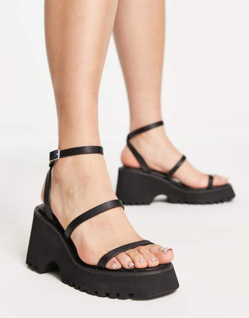 ASOS DESIGN Trip Sandali neri con suola a carrarmato e triplo Very well made.