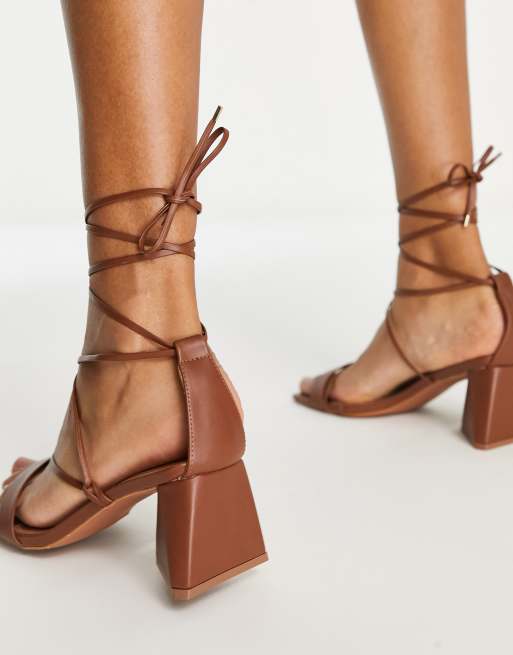 ASOS DESIGN Hilani Sandali a pianta larga color cuoio con tacco largo medio allacciati sulla gamba Very well made.