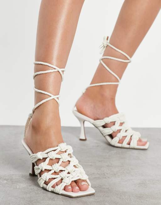 ASOS DESIGN Henley Sandali a pianta larga con tacco medio e lacci alla caviglia in corda tonalit neutra Very well made.
