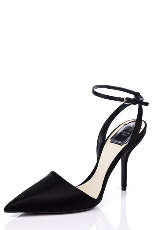Dior Black Satin Ankle Strap Pumps UFO No More Very well made.