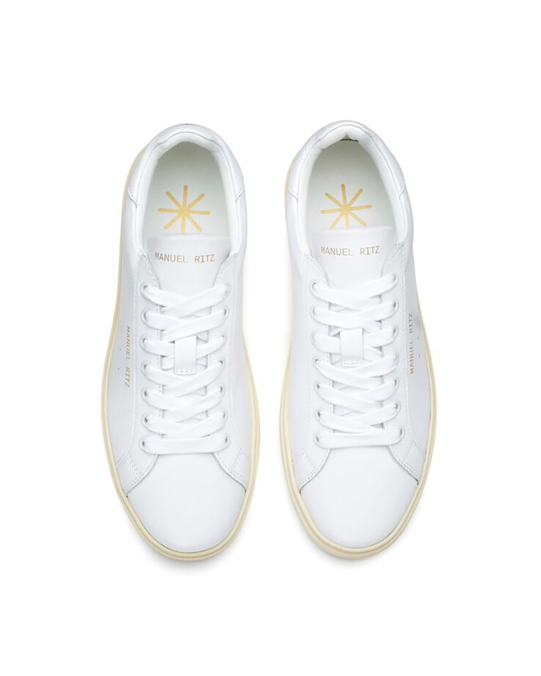 Sneakers bianche in pelle con piccolo logo color oro a lato Very well made.