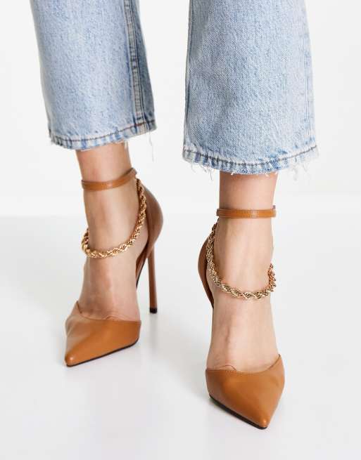ASOS DESIGN Palma Scarpe color cuoio con tacco alto e catena Very well made.