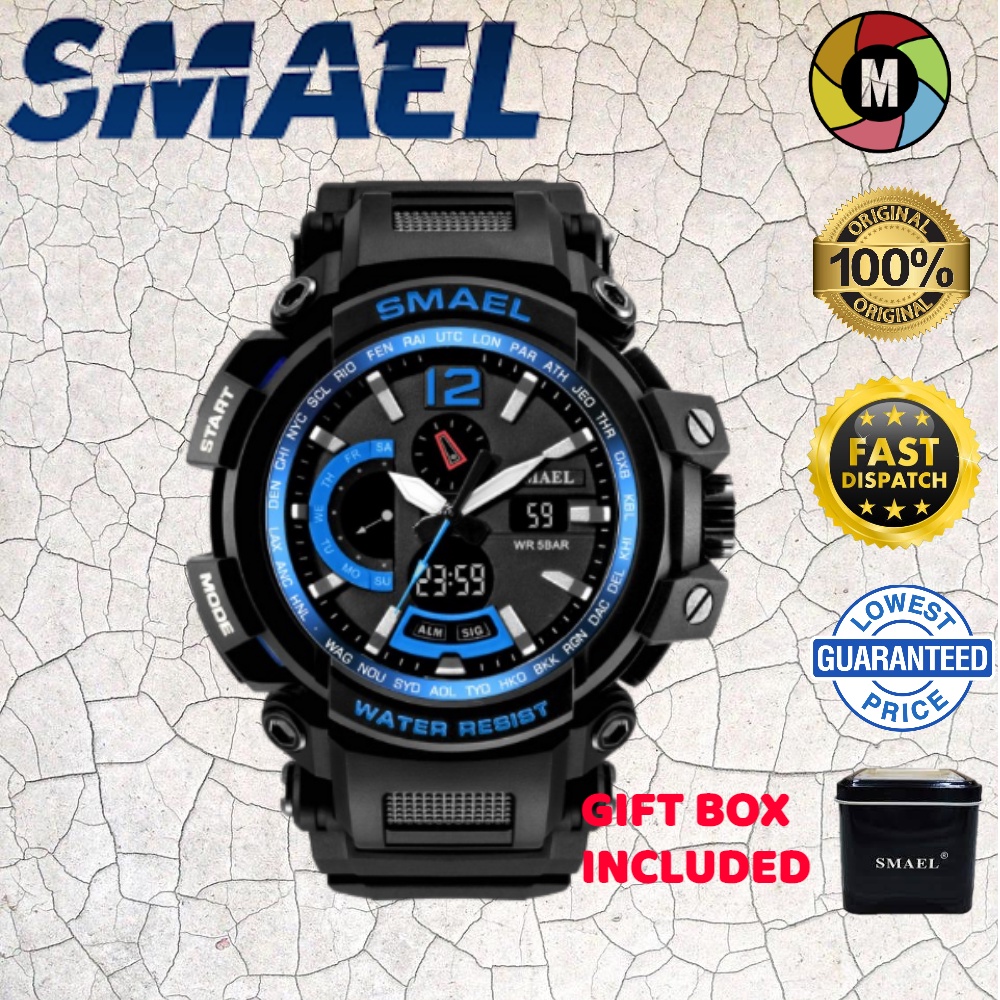 Smael Analogue Digital Black Dial Men s Watch Gmarks 1702 Red Very well made.