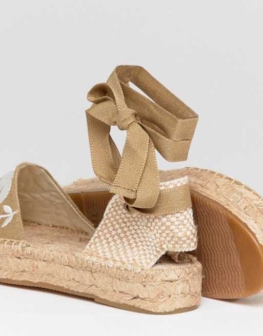 Soludos Taupe Floral Ankle Tie Platform Espadrille Very well made.