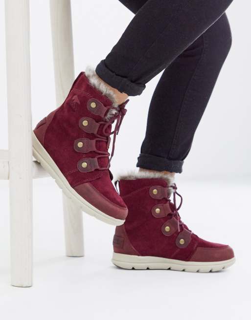 Sorel waterproof explorer lace up lined boot in red Very well made.
