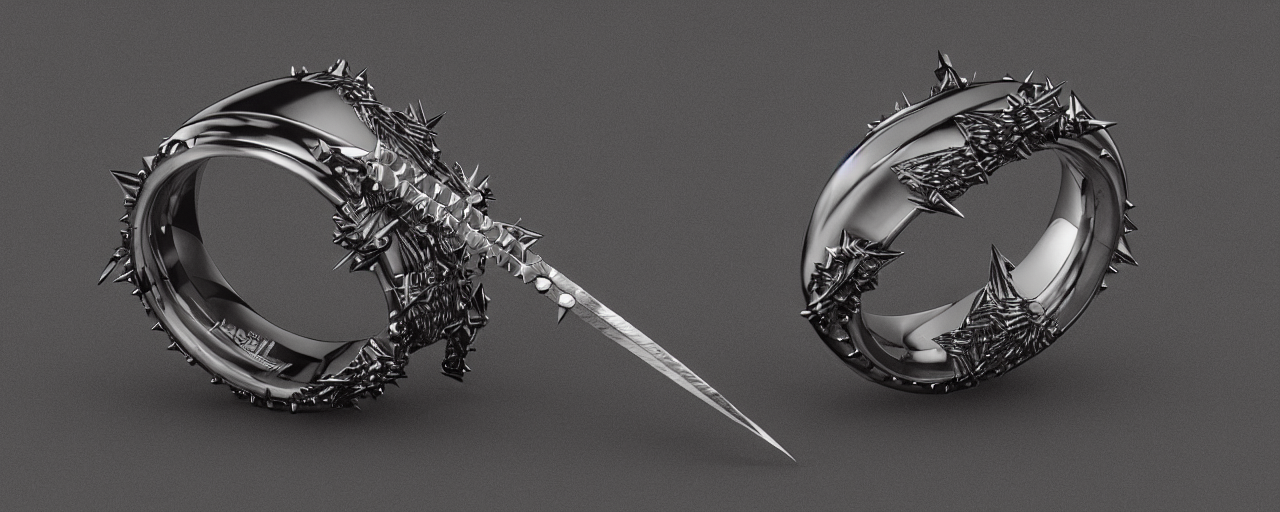 prompthunt tungsten ring with spikes ring steel sword Very well made.