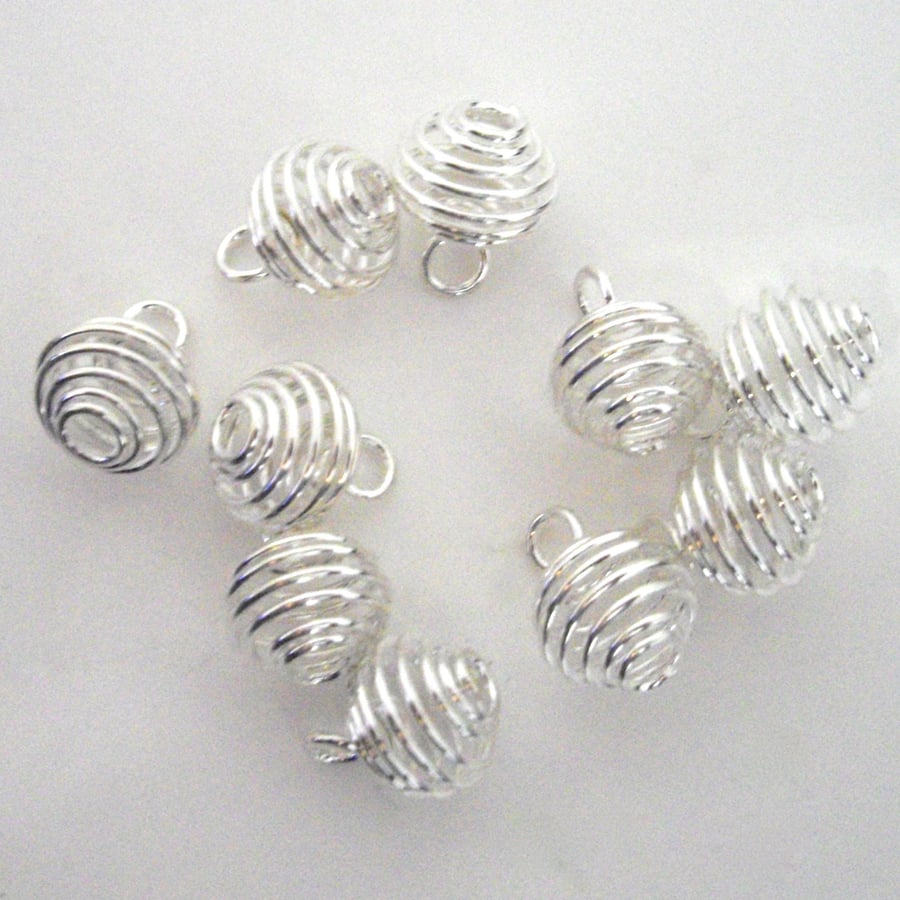 10 Pcs Silver Plated 29mm x 25mm Wire Bead Cages Spiral Lantern Coil Charms E270 Very well made.