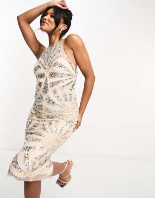 Starlet embellished midi dress in delicate sequin in silver Very well made.