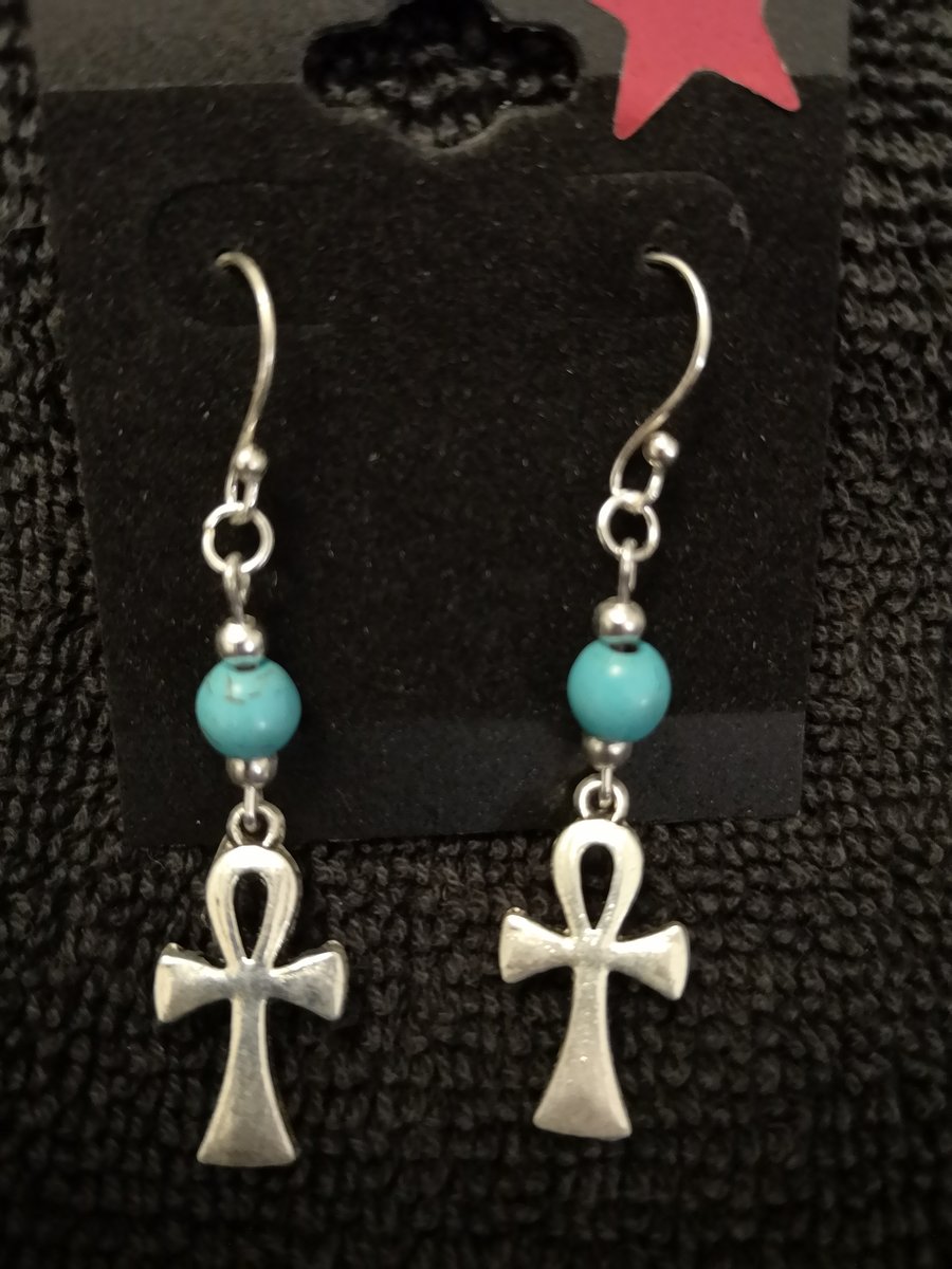 Silver Ankh cross Earrings Alternative Finch Very well made.