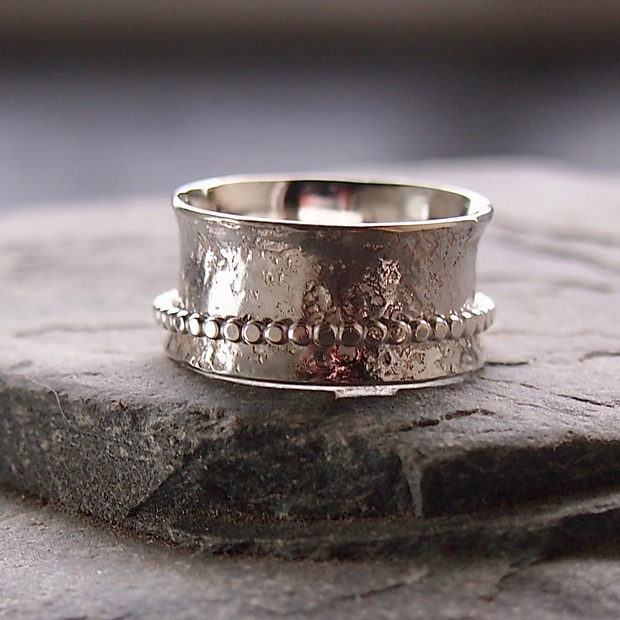 Handmade Sterling Silver Concave Ring with bead spinner Very well made.