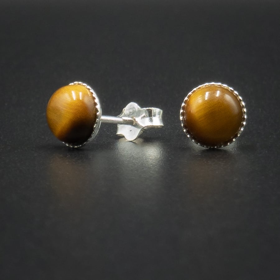 Tiger eye sterling silver stud earrings Capricorn jewellery Very well made.