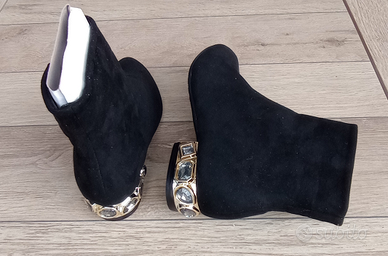 Stivaletti neri bassi modello biker con fibbie con strass Very well made.
