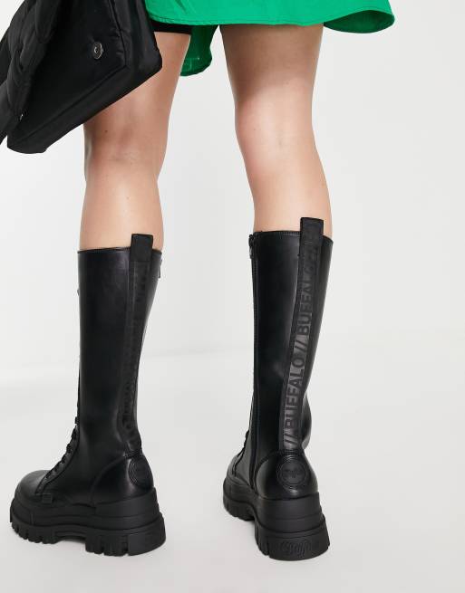 Buffalo Aspha On high leg lace up boots in black Very well made.