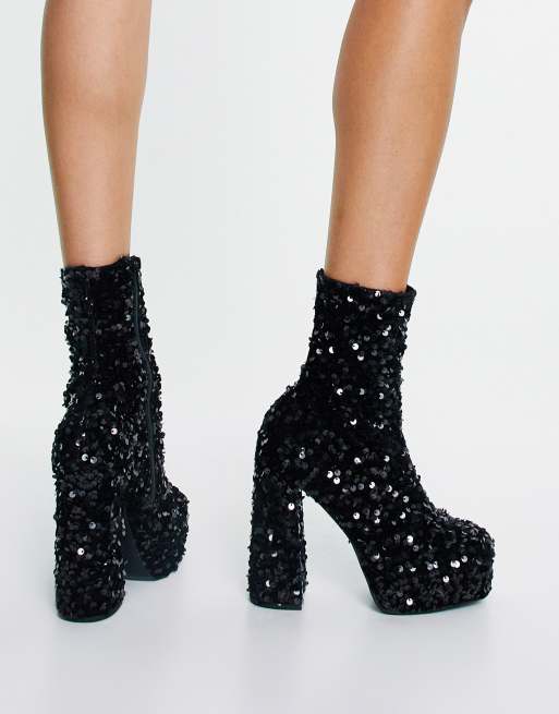 ASOS DESIGN Extrovert Stivali neri in paillettes con tacco alto e plateau Very well made.