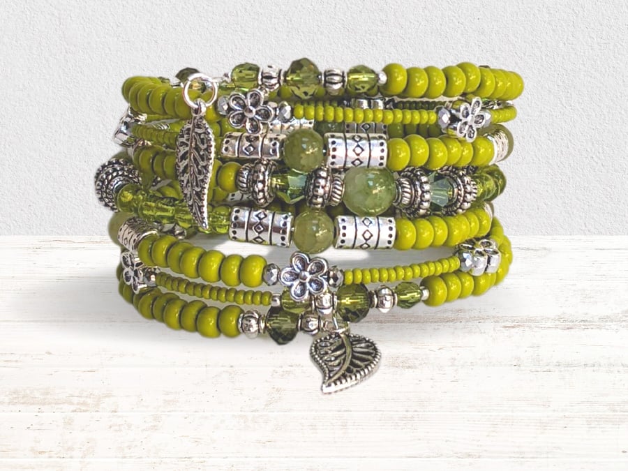 Memory Wire Bracelet in Lime Green and Silver Folksy Very well made.