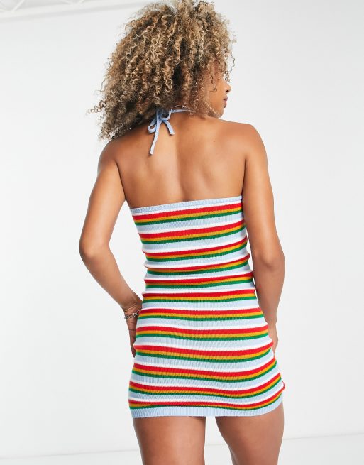 COLLUSION knitted halter neck dress with striped print Very well made.