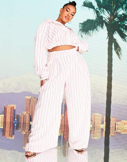 ASOS DESIGN x MILLIE Curve wide leg trouser with tie waist in pink Very well made.