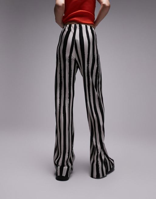 Topshop stripe printed plisse wide leg trouser in monochrome Very well made.