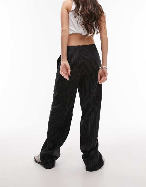 Topshop tailored pinstripe low slung trouser in black Very well made.
