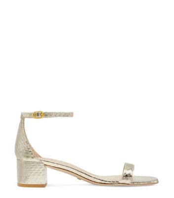 Nearlynude Strap Heel Metallic Fabric Sandal Stuart Weitzman Very well made.