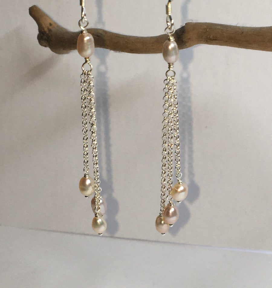 Rice pearl and sterling silver chain earrings Folksy Very well made.