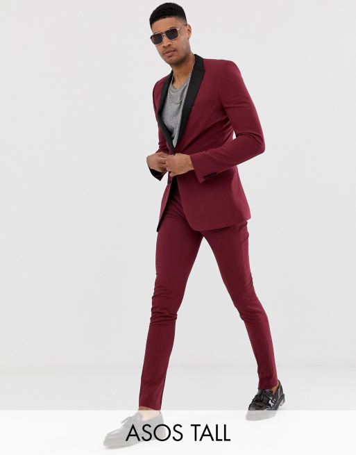 ASOS DESIGN Tall super skinny tuxedo suit trousers in burgundy ASOS Very well made.