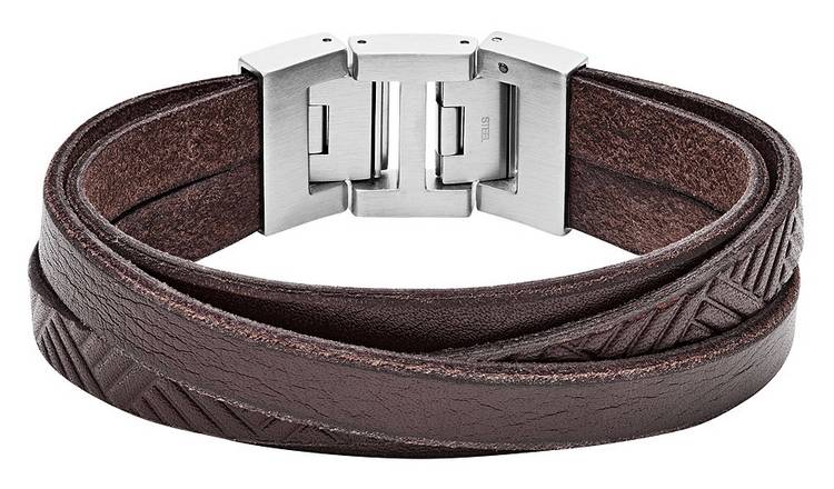 Buy Fossil Men s Brown Textured Leather Wrist Wrap Bracelet Argos Very well made.