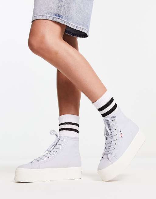 Superga 2708 Sneakers alte con suola flatform grigio lilla Very well made.