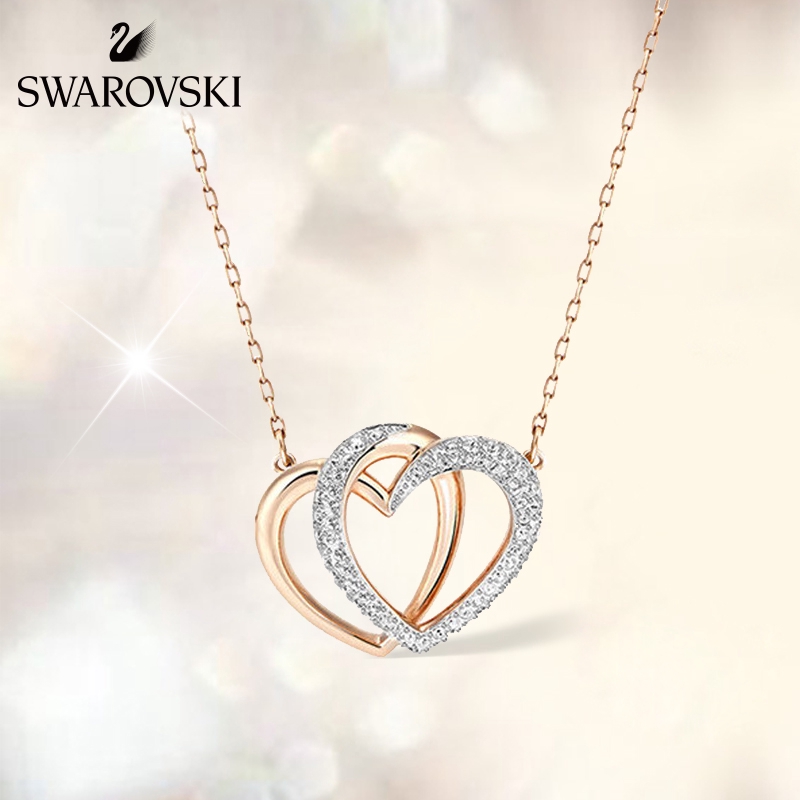 Swarovski DEAR Double Heart Necklace Love Pendant Female Clavicle Very well made.