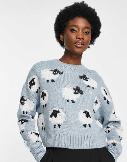 Stradivarius pattern sweater with sheep motif in blue Very well made.