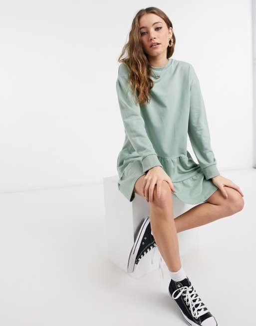 New Look mini sweatshirt dress with tiered skirt in mint green Very well made.