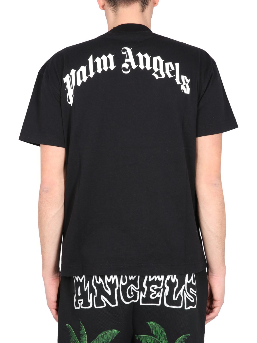 Black t shirt with brand and rhinestone print Palm Angels Very well made.
