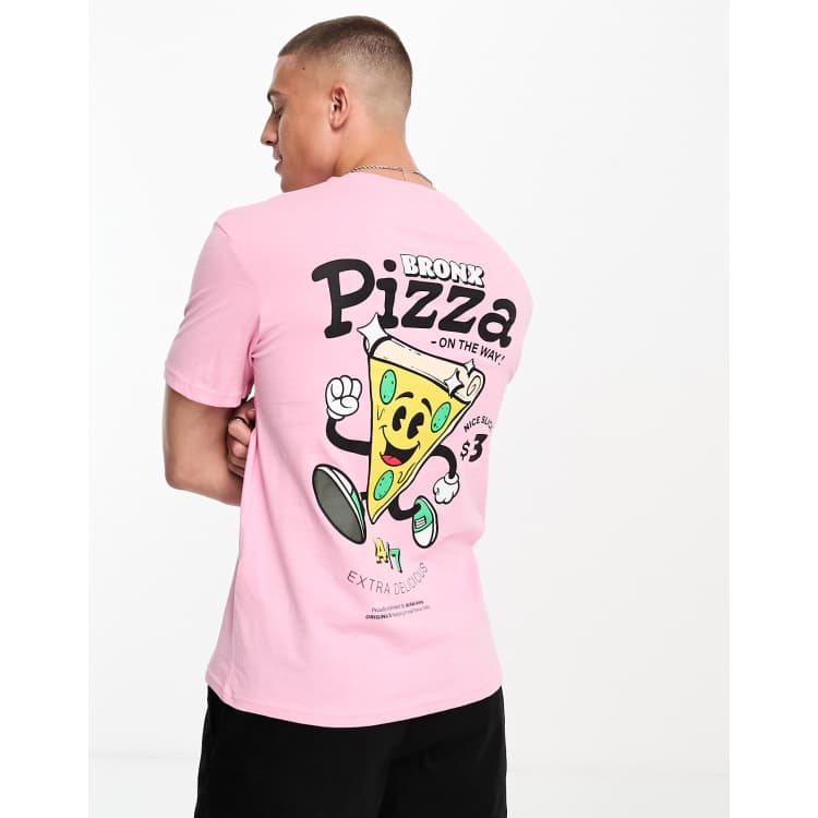 Jack Jones Originals t shirt with pizza back print in pink Very well made.