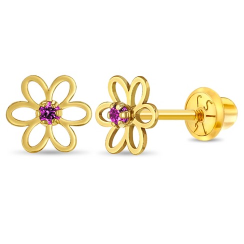 Girl s Jeweled Open Flower Screw Back 14k Gold Earrings In Very well made.