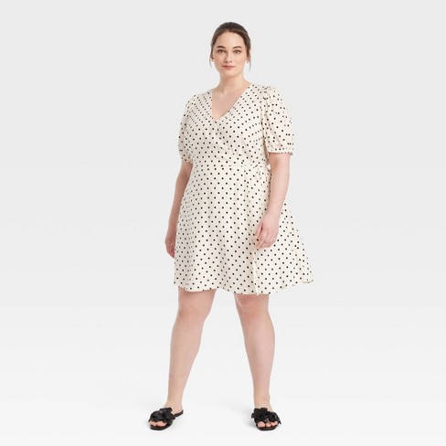 Women s Balloon Short Sleeve Mini Wrap Dress A New Day Cream Very well made.