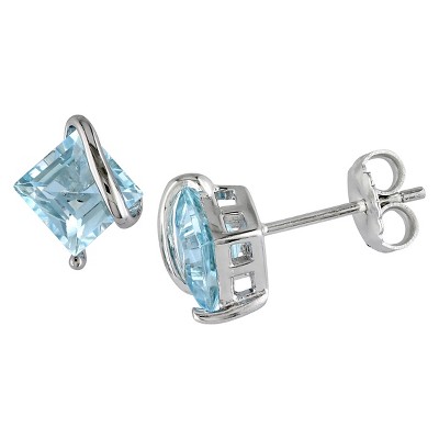 6mm Round cut Aquamarine Crown Stud Earrings In Sterling Silver Very well made.