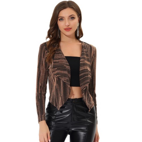 Allegra K Women s Sparkly Cropped Cardigan Long Sleeve Party Open Very well made.