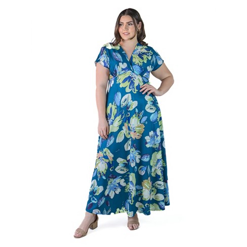 Plus Size Floral V Neck Short Puffed Sleeves Empire Waistline Maxi Very well made.