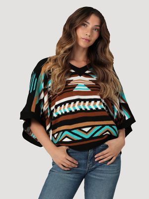 Women s Wrangler Draped Sleeve Boxy Poncho Sweater Very well made.