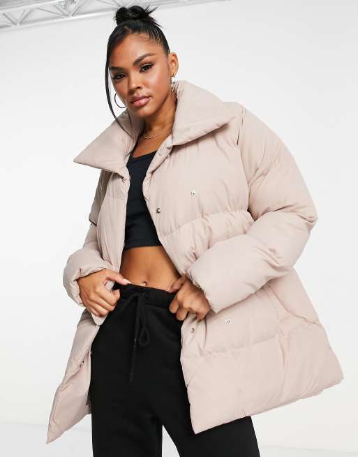 Topher Longline Puffer Jacket in Taupe Very well made.