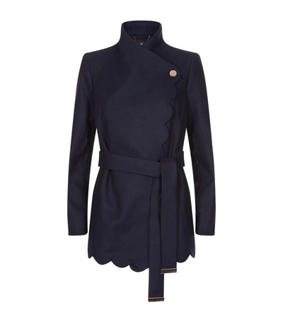 Aastar Scallop Edge Short Wrap Coat In Navy Very well made.
