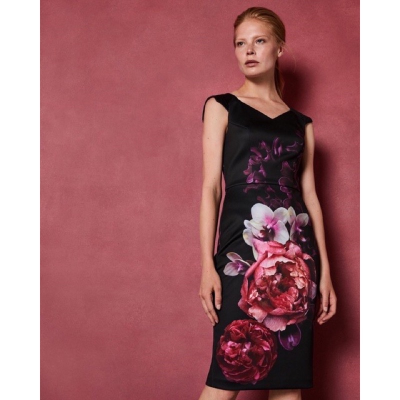 TED BAKER SEMANJ Splendour Floral PrintBodycon Dress Midi Black Very well made.