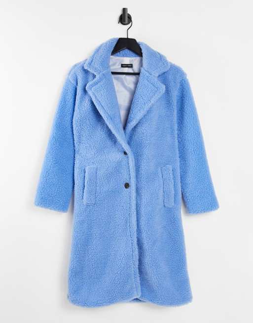 NA KD Teddy Coat in Blue Lyst Very well made.