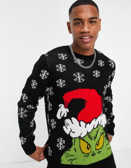 ASOS DESIGN Grinch Christmas jumper in black Very well made.