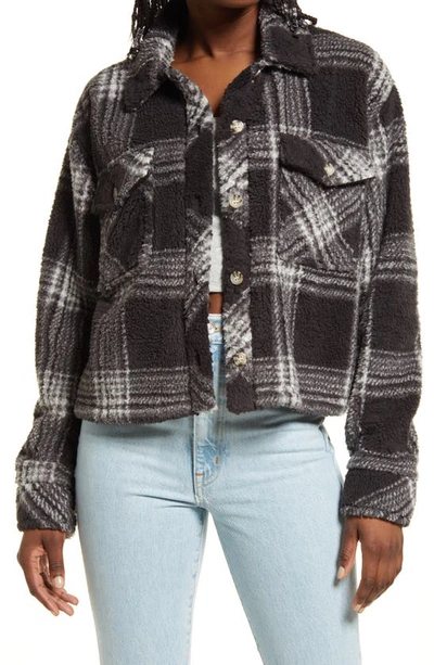 Crop Fleece Shirt Jacket In Black White Plaid Very well made.