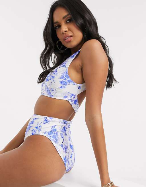 Floral Print Contrast Mesh Tie Back Bikini Swimsuit Lovebird Very well made.