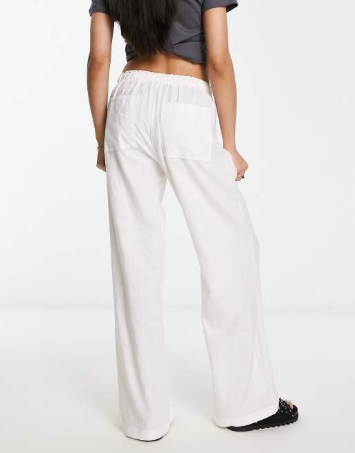 Bershka tie waist wide leg linen pants in white Very well made.